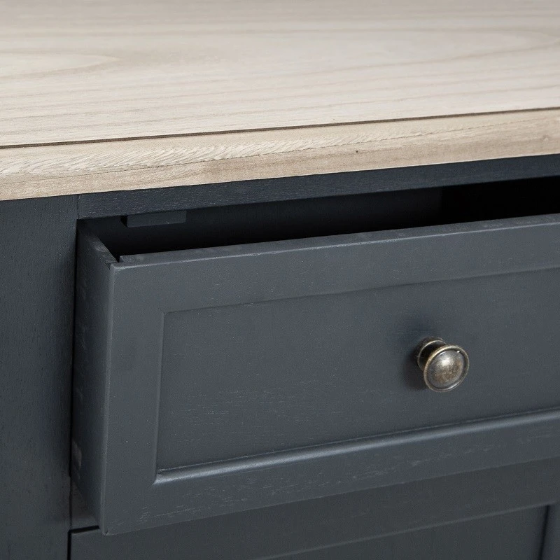 Buffet bicolore assorti aux autres meubles de la collection. En bois massif de paulownia, bois très léger. Livré monté.
