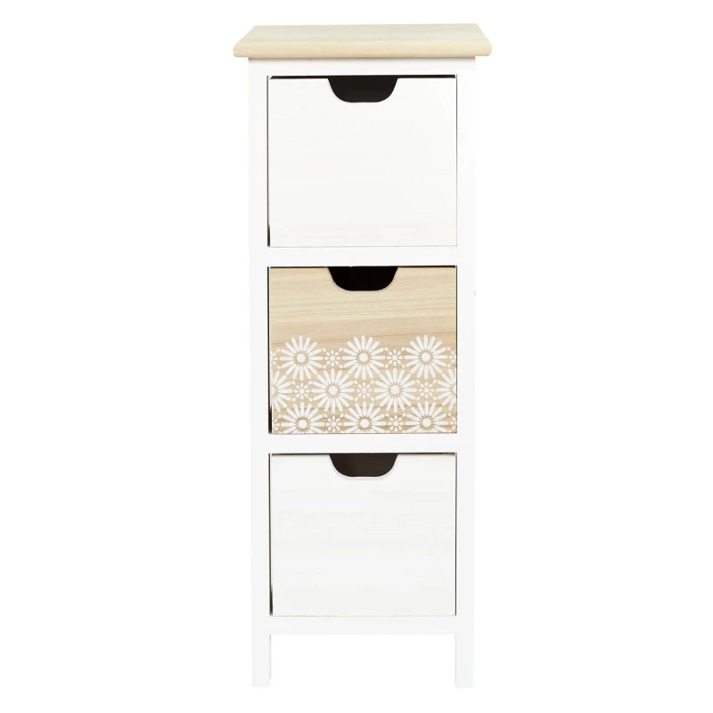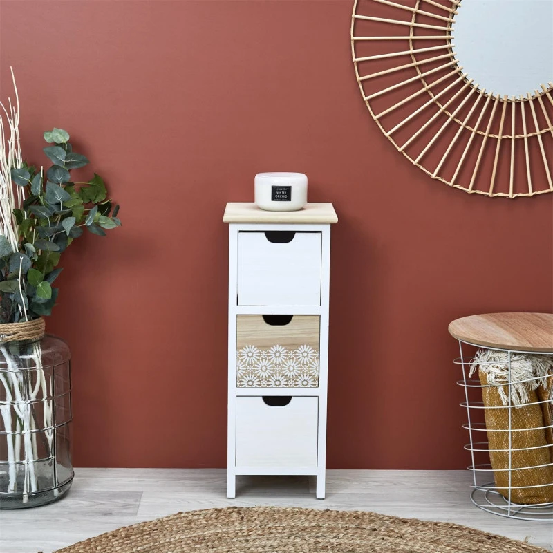 Bénéficiez de rangement supplémentaire avec le chiffonnier 3 tiroirs Chic coloris naturel et blanc.