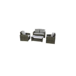 2 fauteuils (68x67xH70 cm) + 2 repose pieds (50x38xH32 cm) + 1 table basse (45x45xH41 cm).