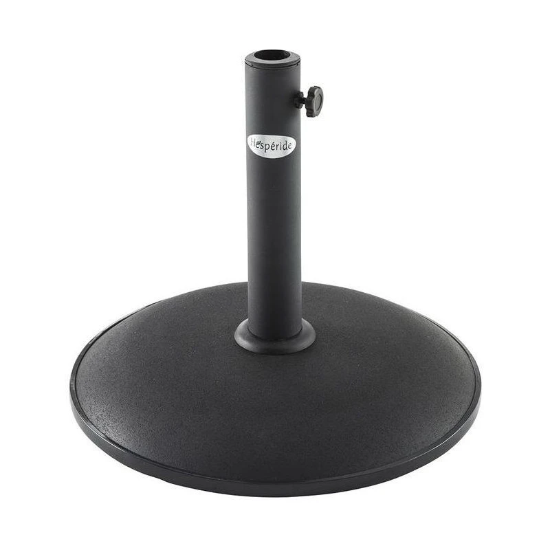 Le pied de parasol 15 kg Hespéride en béton noir assurera le bon maintien de votre parasol mat central.