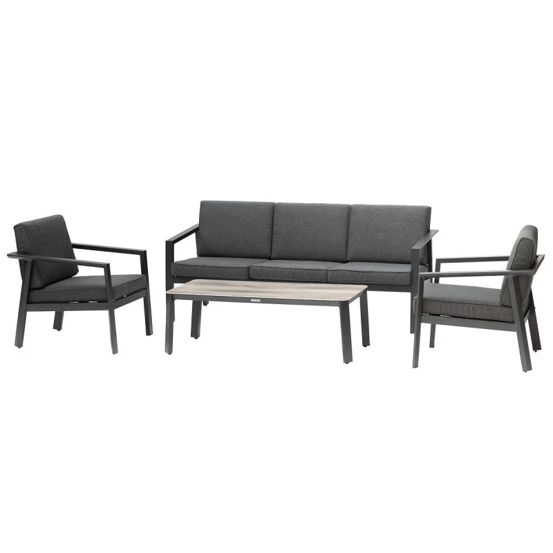 Appréciez le confort et le style du salon de jardin 5 places Pavane de la marque Hespéride en coloris graphite.