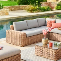 Son assise en polyester enduit PVC (Texaline) 560 g/m² et sa structure en aluminium époxy antirouille assurent un confort et une qualité durable à l’extérieur.
